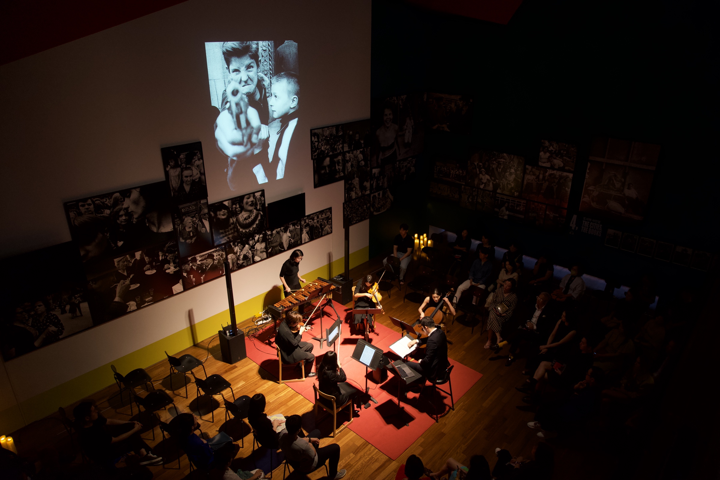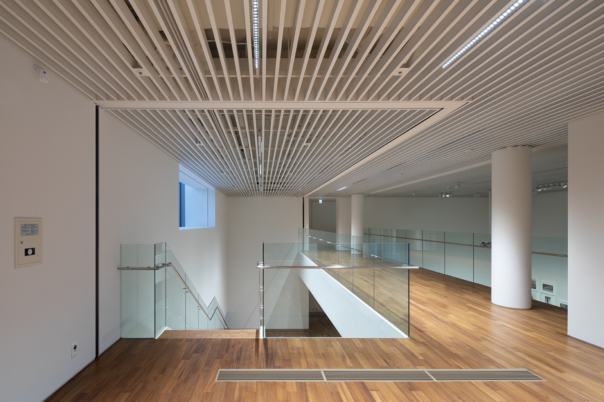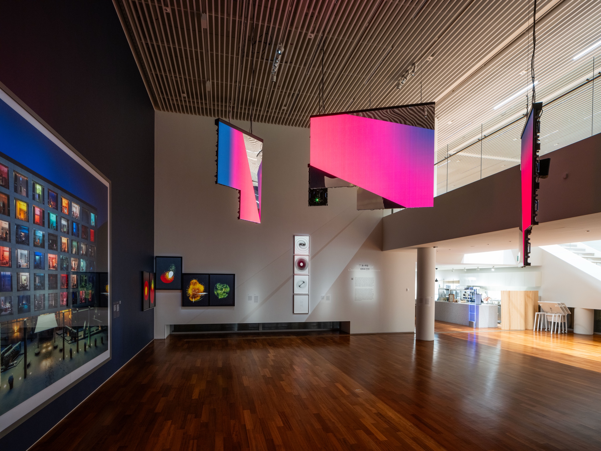 지하 1층의 멀티홀은 7미터 높이의 대형 전면 벽을 갖춰 이미지와 영상을 압도적인 규모로 구현할 수 있으며, 콘서트홀급 음향 설비를 갖춘 다목적 공간입니다. 전시, 퍼포먼스, 강연 등 다양한 장르를 수용하도록 설계되어 관람객에게 몰입도 높은 경험을 제공합니다.