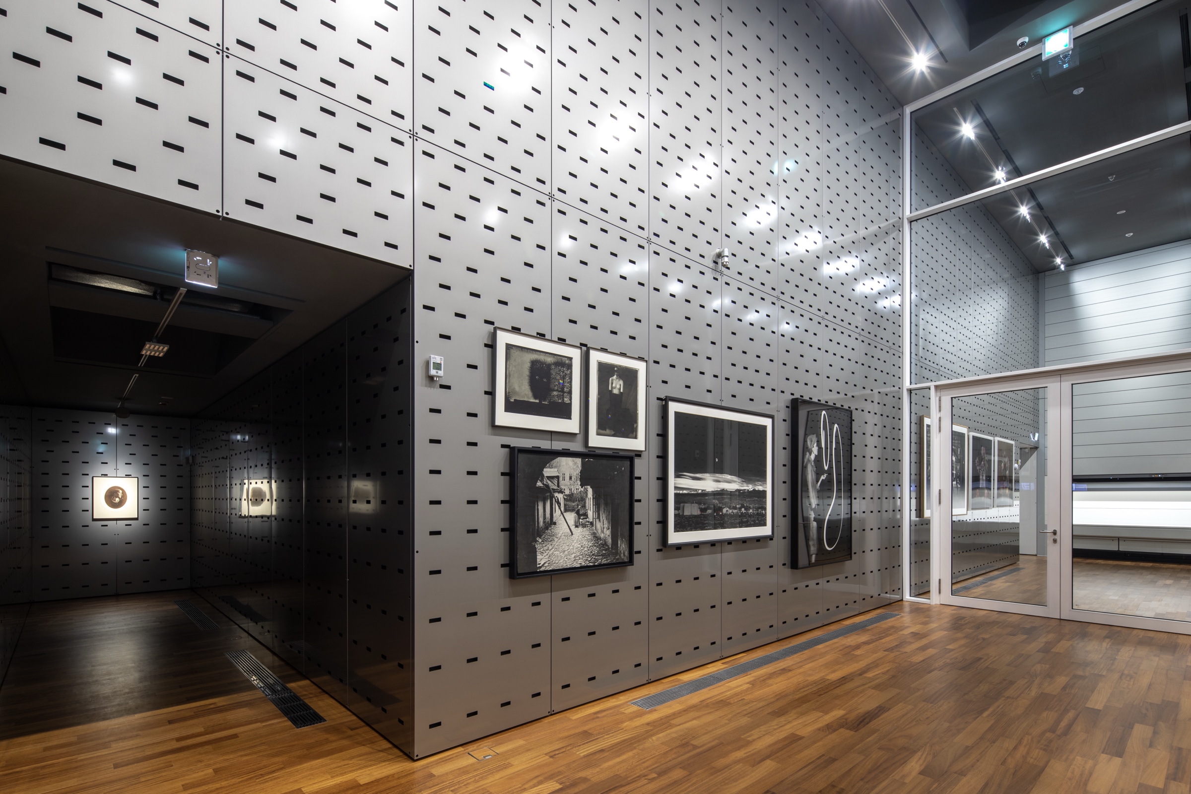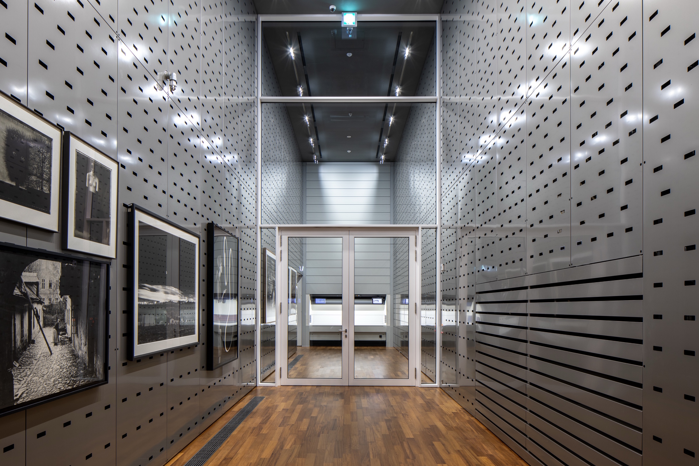 수장고는 지난 20년간 수집한 약 2만 점의 사진 소장품을 보관합니다. 저온 수장고는 15℃·35% RH, 냉장 수장고는 5℃·35% RH를 유지하며, 내부 재료는 pH 7의 중성 아카이벌 제품으로 구성됩니다. 특히 냉장 수장고는 자료 수명을 약 500년까지 연장합니다.