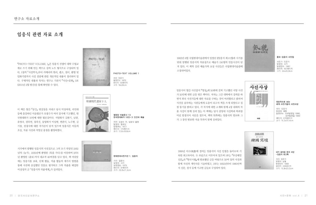 『사진+문화』는 한국사진문화연구소에서 연 1회 발행하는 기관지로 한국사진사 관련 자료를 공유하고 연구소의 프로젝트를 소개하기 위해 기획되었습니다.