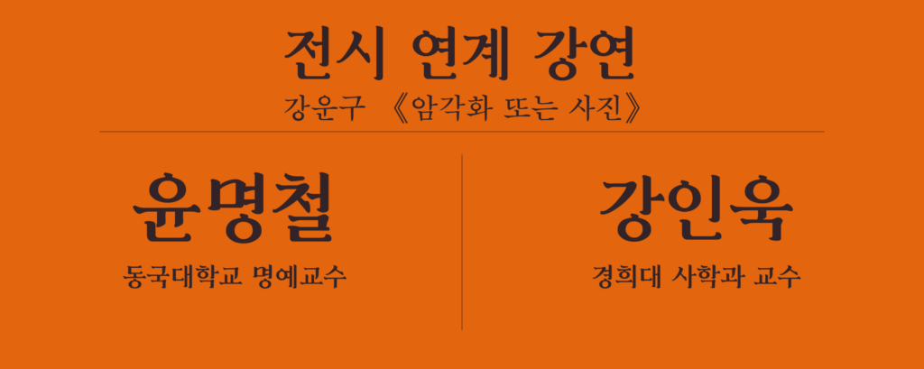 《암각화 또는 사진》에서 강운구 작가는 중앙아시아와 동아시아의 여러 지역에 펼쳐져 있는 다양한 암각화를 통해 고대인들의 삶을 탐구했습니다. 이번 연계 강연은 전시를 관람하며 느낀 암각화에 대한 궁금증과 호기심을 해소할 수 있는 소중한 시간이 될 것입니다. 동국대학교와 우즈베키스탄 사마르칸트 국립대학 고고학과 교수인 윤명철과 경희대학교 사학과 교수인 강인욱이 강연을 할 예정이며, 이를 통해 암각화 그리고 우리나라와 중앙아시아의 관계를 깊이 이해하고 전시를 더욱 풍부하게 감상할 수 있을 것입니다.