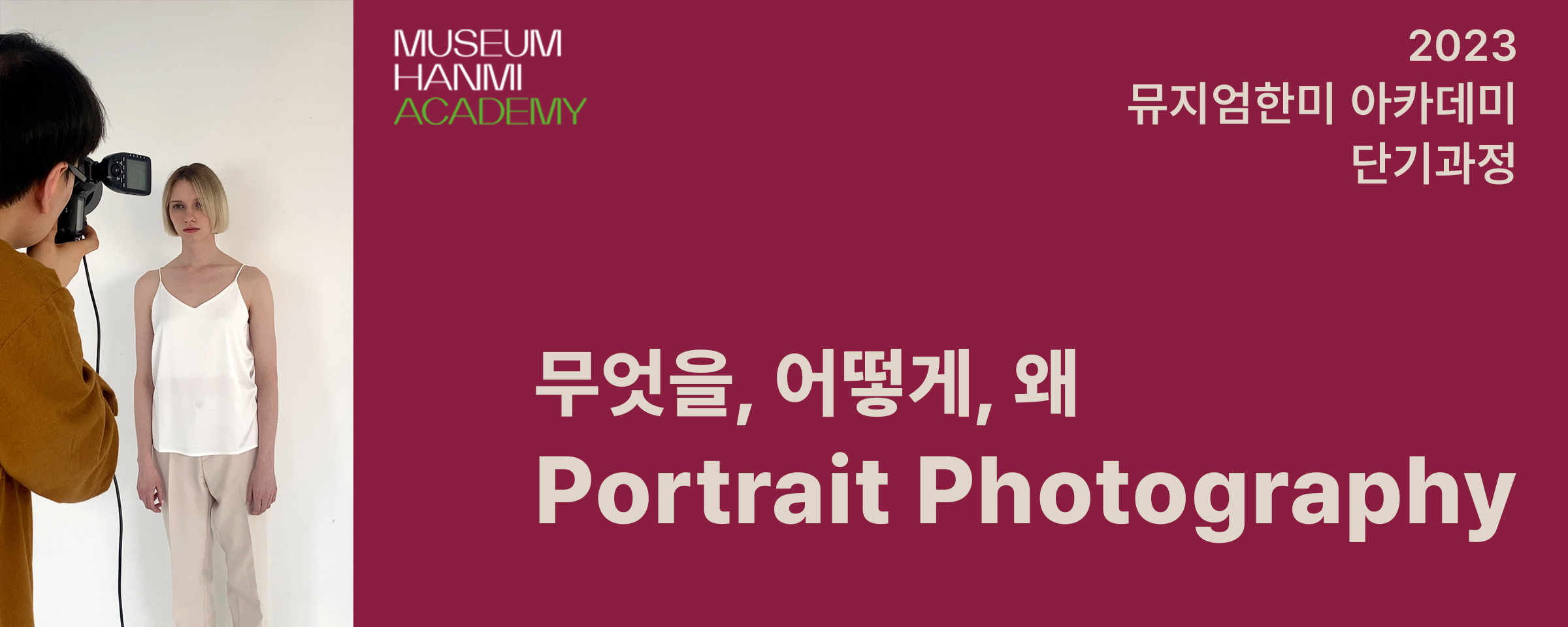 2023 뮤지엄한미 아카데미 단기과정 ‘무엇을 어떻게, 왜 Portrait Photography’는 6주 동안 진행되는 수업으로, 인물사진을 위한 기초이론과 함께 조명장비의 사용법을 익혀 활용하는 스튜디오 실습 과정입니다.