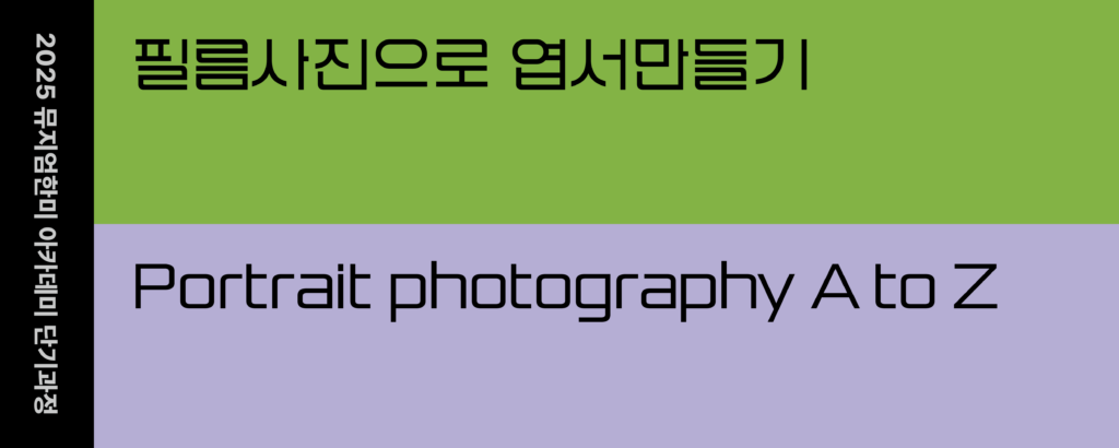 2025 뮤지엄한미 아카데미 겨울학기 단기과정은 사진 작업을 하는데 있어 필수적이지만 밀도있게 다루기 어려운 영역을 배울 수 있는 과정으로 개설됩니다. 필름 사진이 스캔, 인화 그리고 이후의 디지털 작업과 잉크젯 프린트를 통해 종이로 옮겨지는 과정을 이해하는 〈필름사진으로 엽서만들기〉, 인물사진을 위한 조명의 활용법에 대해 다방면으로 배우고 촬영해보는 스튜디오 실습과정 〈Portrait photography A to Z〉 두 강좌로 진행됩니다.