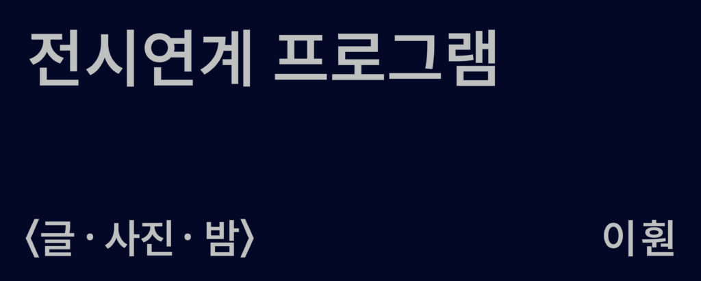 전시연계 프로그램 〈글∙사진∙밤〉은 시를 매개로 전시를 감상하고, 이를 통해 자신만의 글을 창작해보는 시간입니다. 사진과 문학이 서로의 영감이 되어, 예술의 경계가 확장되는 경험을 해볼 수 있는 워크숍 프로그램입니다. 금요일 저녁, 다양한 장르의 예술을 통해 잠들어 있던 감각을 깨우고 새로운 창작의 세계를 탐험해보세요.