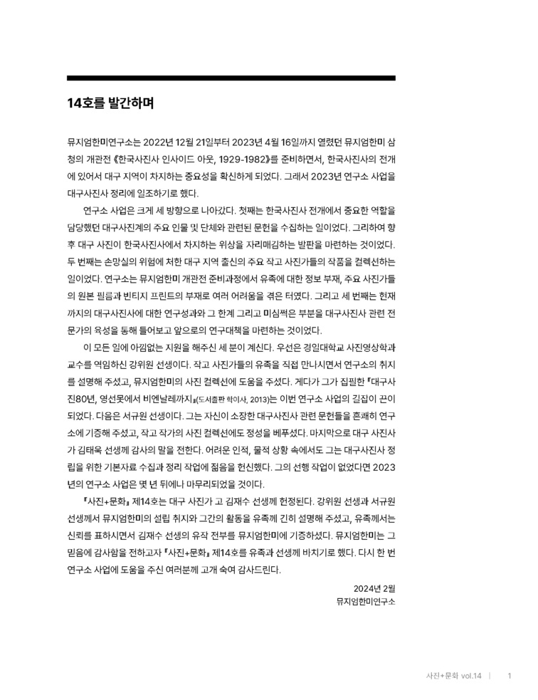 1. 14호를 발간하며