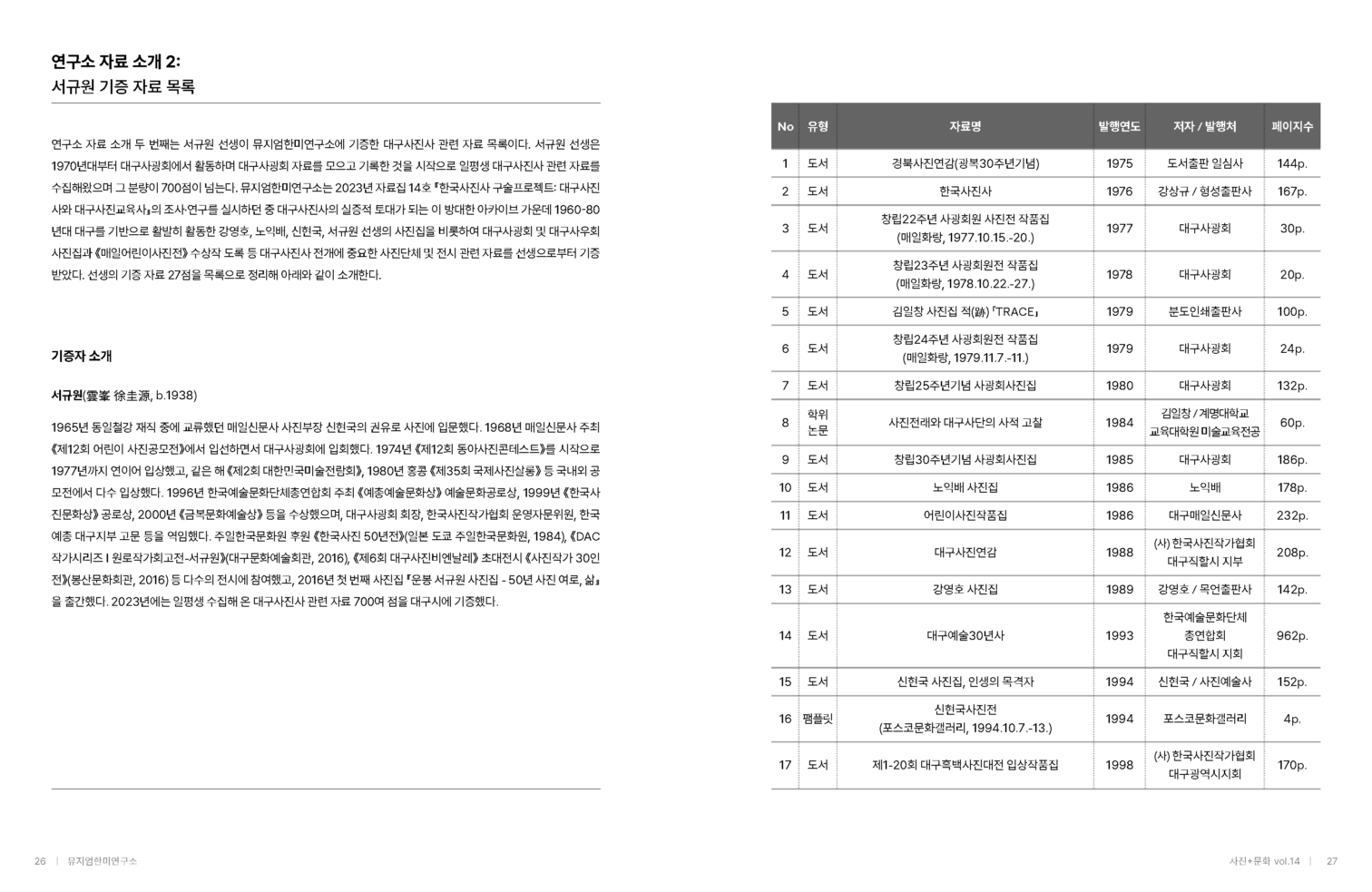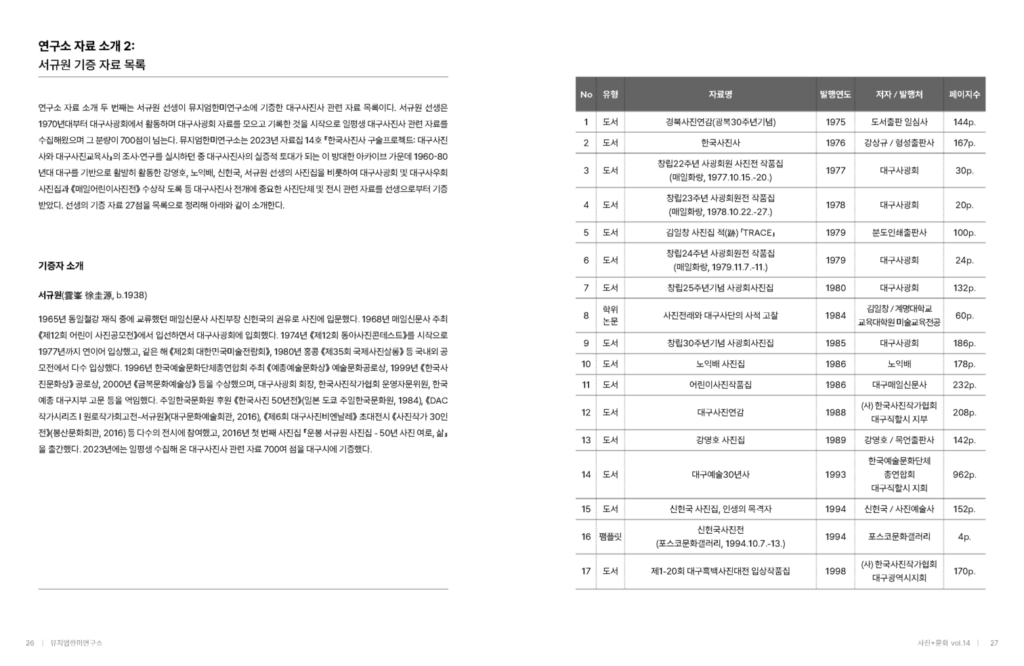 『사진+문화』는 뮤지엄한미연구소에서 발행하는 기관지로 한국사진사 관련 자료를 공유하고 연구소의 프로젝트를 소개하기 위해 기획되었습니다.
