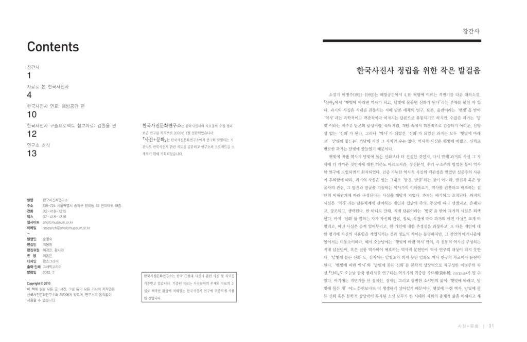 『사진+문화』는 한국사진문화연구소에서 연 1회 발행하는 기관지로 한국사진사 관련 자료를 공유하고 연구소의 프로젝트를 소개하기 위해 기획되었습니다.