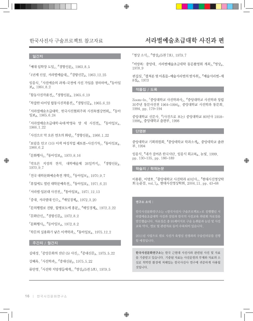 6. 한국사진사 구술프로젝트 참고자료 : 서라벌예술초급대학 사진과 편