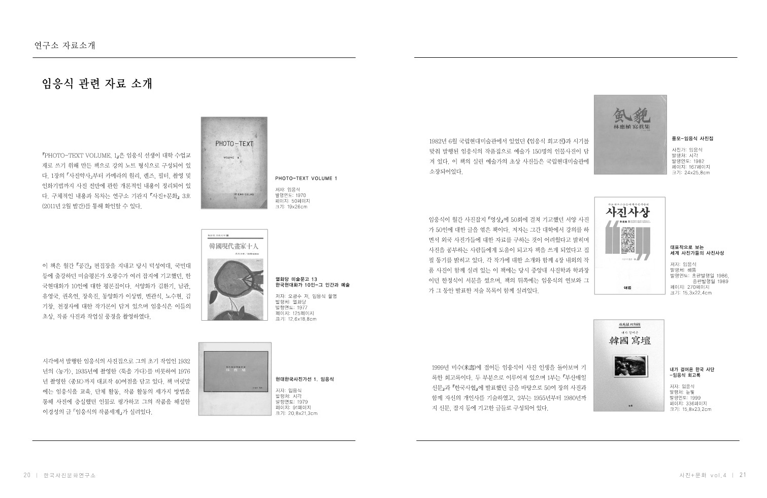 『사진+문화』는 한국사진문화연구소에서 연 1회 발행하는 기관지로 한국사진사 관련 자료를 공유하고 연구소의 프로젝트를 소개하기 위해 기획되었습니다.