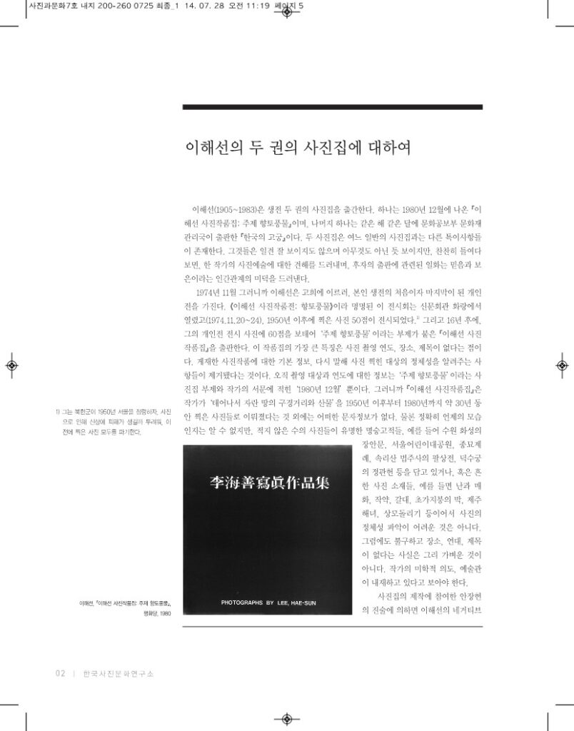 『사진+문화』는 한국사진문화연구소에서 연 1회 발행하는 기관지로 한국사진사 관련 자료를 공유하고 연구소의 프로젝트를 소개하기 위해 기획되었습니다.