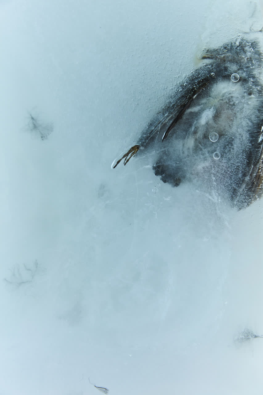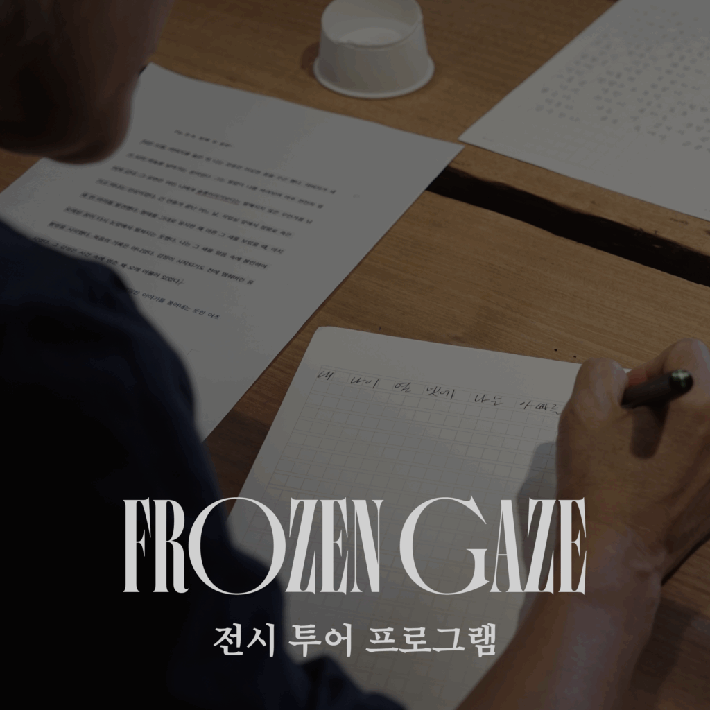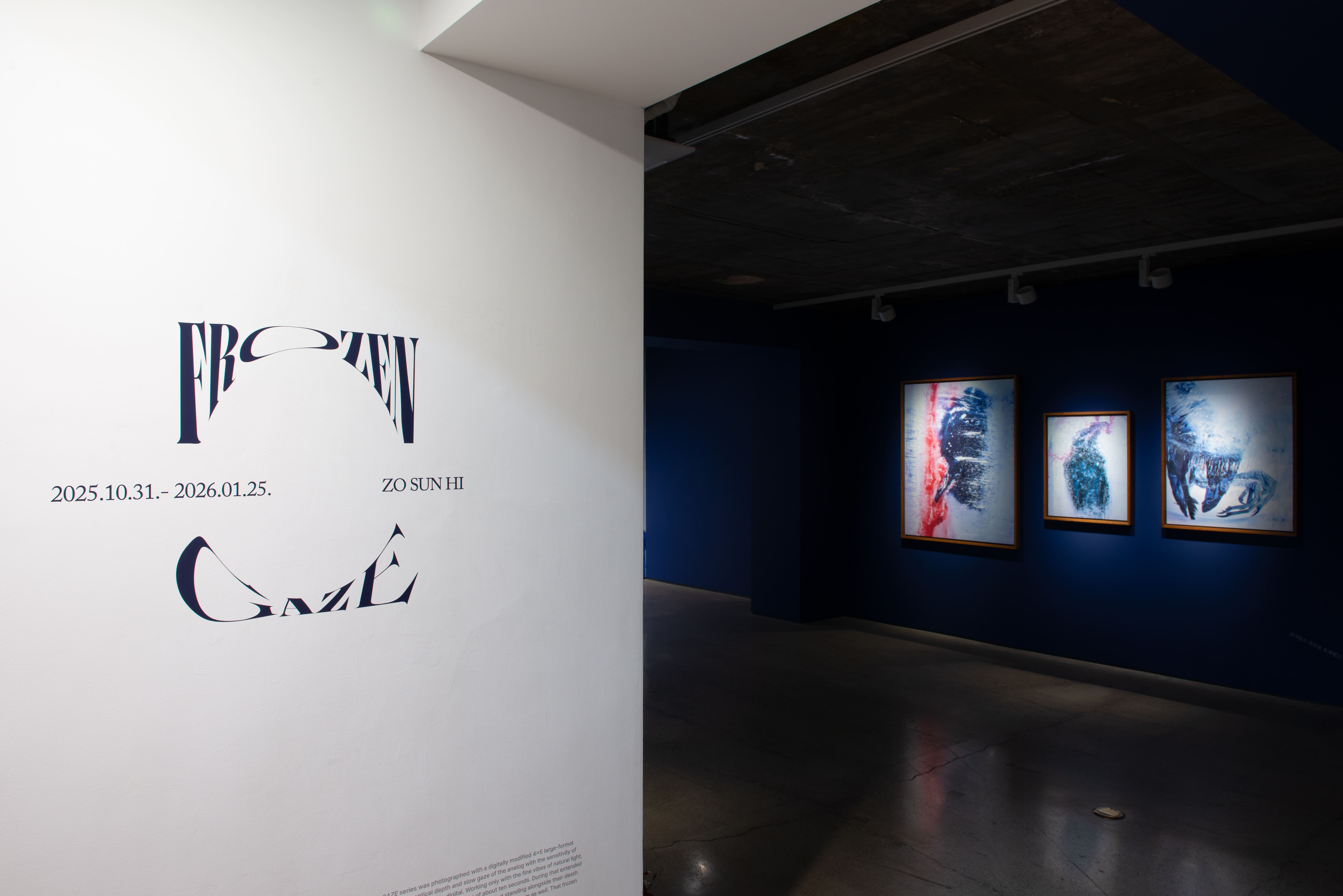 전시에서 소개되는 〈FROZEN GAZE〉연작은 2018년, 작가가 작업실 앞에서 마주친 죽은 참새로부터 시작되었다. 이후 작가는 로드킬당한 새들을 얼음으로 얼리고 이를 사진으로 기록하며 작업을 이어왔다. 죽은 새의 모습을 통해 돌아가신 아버지를 떠올린 작가는 ‘얼림’이라는 행위를 통해 아버지의 죽음을 온전히 받아들이지 못한 채 멈춰 있는 자신의 감정을 직면하고자 한다. 연작의 제목이자 전시 제목인 ‘Frozen Gaze’, 즉 ‘얼어붙은 응시’는 이처럼 순환하지 못하고 멈춘 감정을 끝까지 바라보는 시선을 의미한다.