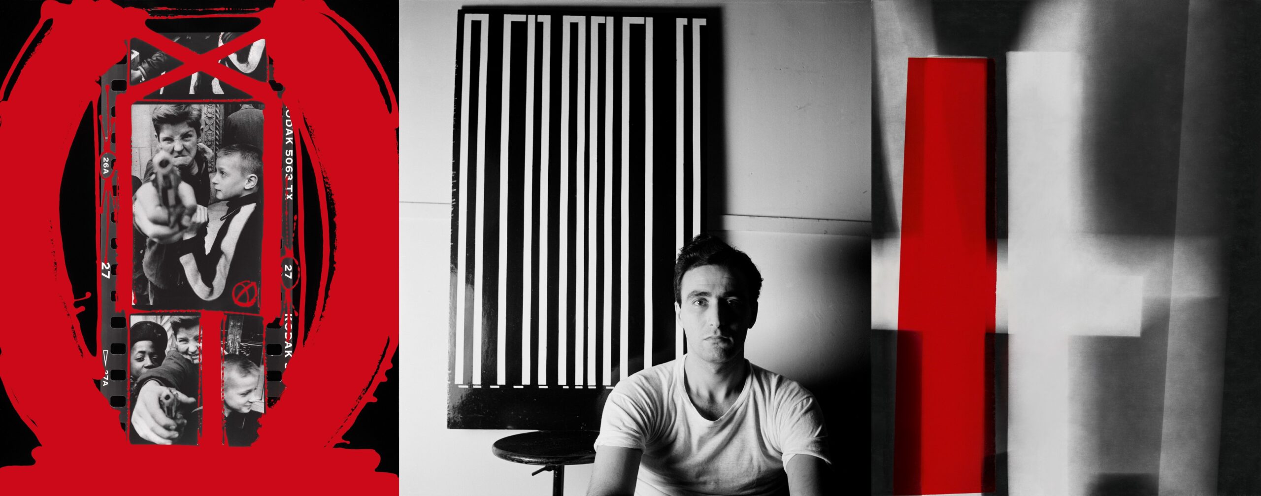 (좌) 윌리엄 클라인, 〈Gun 1(1954), 퐁피두센터에서의 회고전(2005)의 도록 표지와 포스터로 사용한 페인티드 콘택트〉, 2005, ©Estate of Willilam Klein