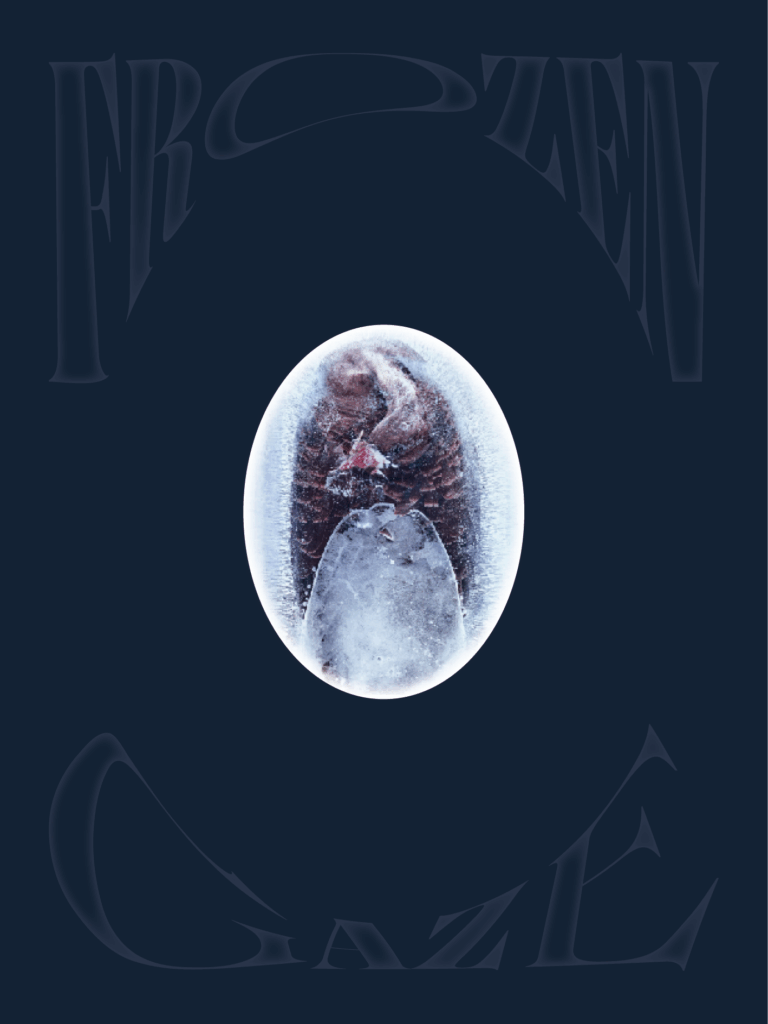 전시에서 소개되는 〈FROZEN GAZE〉연작은 2018년, 작가가 작업실 앞에서 마주친 죽은 참새로부터 시작되었다. 이후 작가는 로드킬당한 새들을 얼음으로 얼리고 이를 사진으로 기록하며 작업을 이어왔다. 죽은 새의 모습을 통해 돌아가신 아버지를 떠올린 작가는 ‘얼림’이라는 행위를 통해 아버지의 죽음을 온전히 받아들이지 못한 채 멈춰 있는 자신의 감정을 직면하고자 한다. 연작의 제목이자 전시 제목인 ‘Frozen Gaze’, 즉 ‘얼어붙은 응시’는 이처럼 순환하지 못하고 멈춘 감정을 끝까지 바라보는 시선을 의미한다.