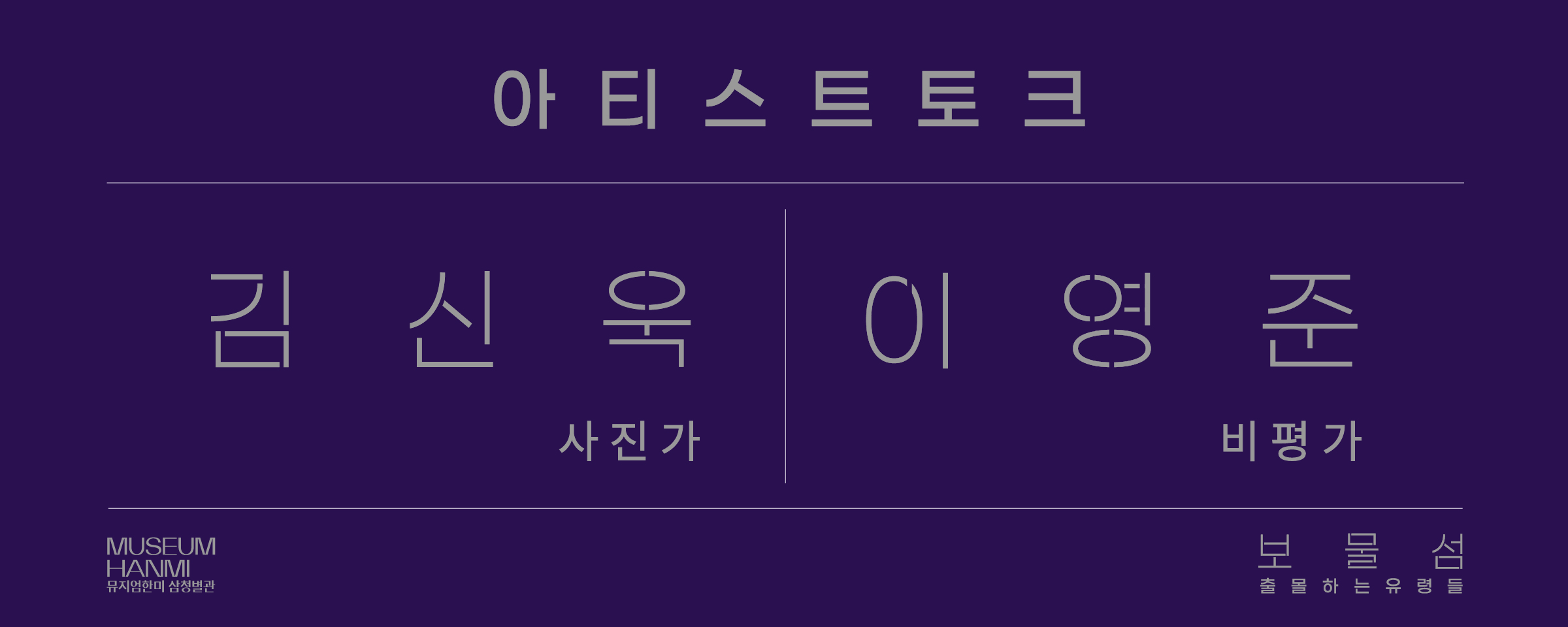 한반도 남단과 주변의 바다와 섬들을 여러 차례 오가며 특정 대상과 장소에서 비롯된 이야기를 추적하고 탐색한 김신욱 작가의 《보물섬: 출몰하는 유령들》을 주제로 한 아티스트 토크를 진행합니다.