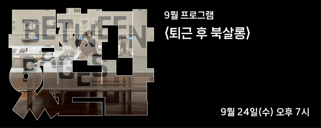 9월 문화가 있는 날을 맞아 〈퇴근 후 북살롱〉 프로그램이 열립니다. 마감 후의 미술관에서 조용히 전시를 관람하고, 다양한 사람들과 감상을 나눌 수 있는 《포토북 속의 매그넘 1943-2025》 전시연계 프로그램입니다. 전시 도슨트를 들은 뒤 리딩룸에서 포토북을 자유롭게 감상하고, 제공된 노트에 짧은 감상이나 드로잉을 기록해볼 수 있습니다. 이후 서로의 기록과 생각을 나누며 전시에 대한 이해와 경험을 확장해 나가는 시간을 마련했습니다. 바쁜 하루를 마친 저녁, 미술관에서 핑거푸드와 음료를 곁들이며 매그넘 포토북을 함께 감상하고 소회를 나누는 특별한 시간을 경험해 보시기 바랍니다.